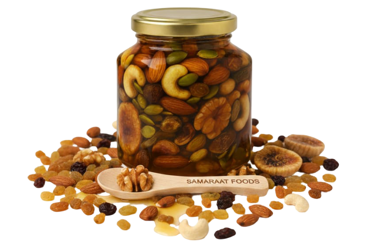 Samaraat Foods brings you 100% natural, organically grown dry fruits — fresh, pure, and rich in nutrition. From almonds and cashews to pistachios, walnuts, and raisins, every pack is hygienically sourced and full of natural energy.